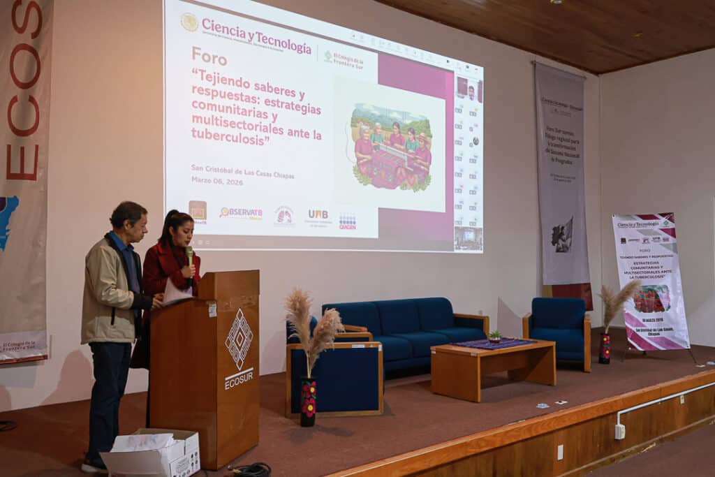 En el marco del Día Mundial de Lucha contra la Tuberculosis, el pasado 6 de marzo se llevó a cabo en las instalaciones de El Colegio de la Frontera Sur (Ecosur), Unidad San Cristóbal, el Foro “Tejiendo saberes y respuestas: estrategias comunitarias y multisectoriales ante la Tuberculosis (TB)”. Este espacio reunió a integrantes de la academia, instituciones de salud y comunidades afectadas por tuberculosis con el propósito de fortalecer las acciones intersectoriales orientadas a la prevención, diagnóstico, tratamiento y seguimiento de la TB en la región de Los Altos de Chiapas.