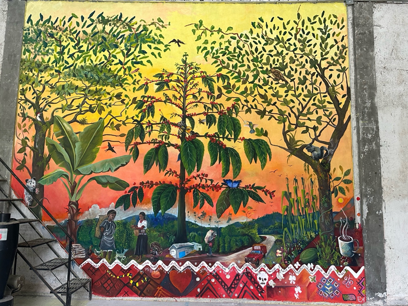 Realizan mural del cafetal tseltal en Tenejapa como parte de investigación doctoral