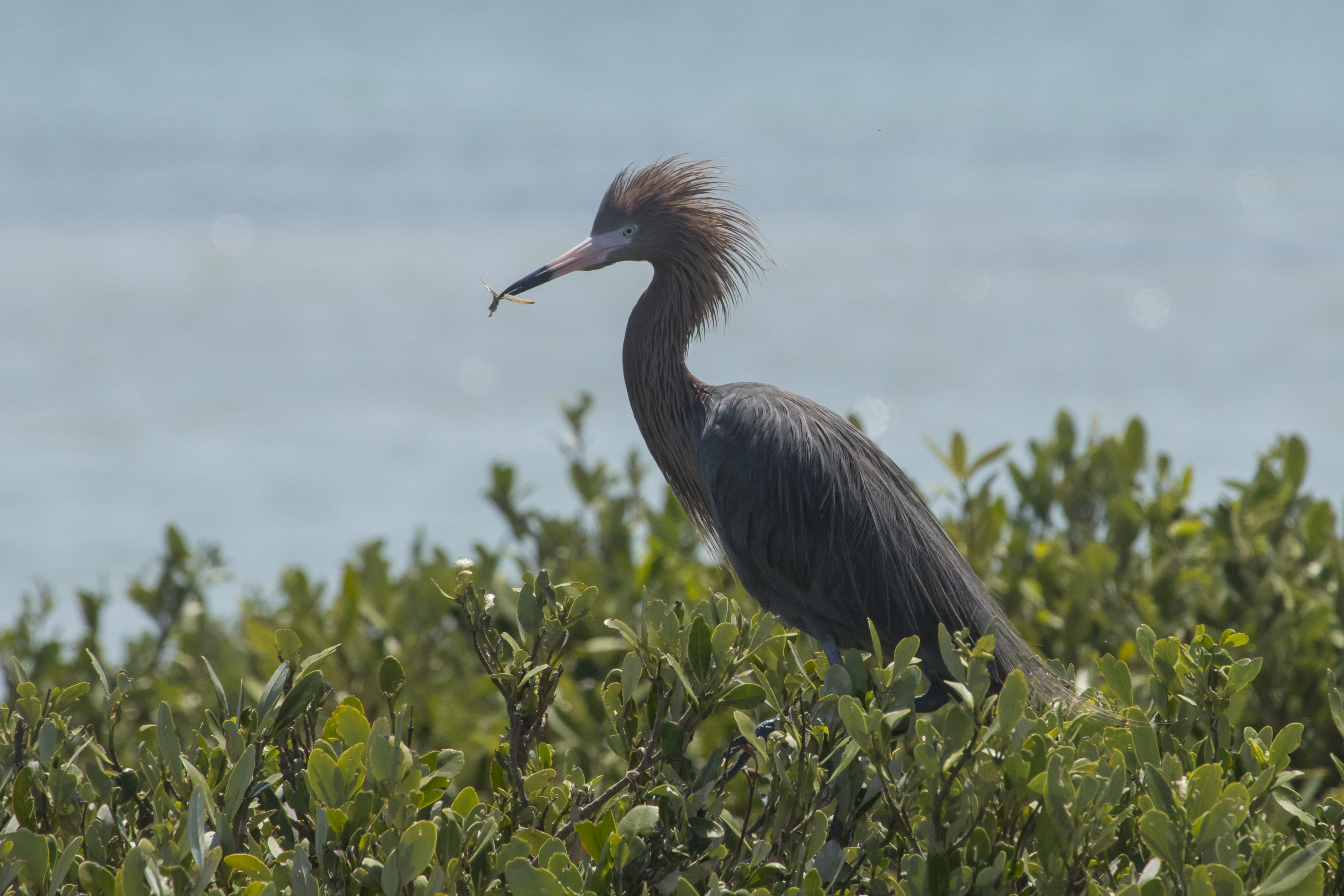 Egretta rufescens · Fotografía: Proyecto LH009 Inventario de aves y mamíferos en los humedales de Laguna de Términos y Pantanos de Centla.