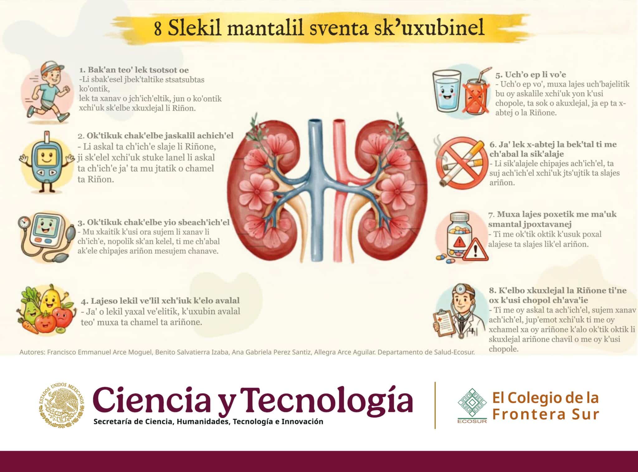 En el marco del Día Mundial del Riñón (12 de marzo), te invitamos a conocer nuestra infografía con las 8 reglas de oro para mantener una salud renal óptima, elaborada por el personal académico del Departamento de Salud de Ecosur.