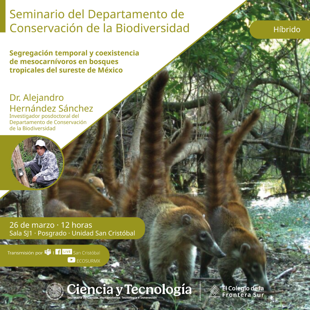 Seminario con el tema “Segregación temporal y coexistencia de mesocarnívoros en bosques tropicales del sureste de México”