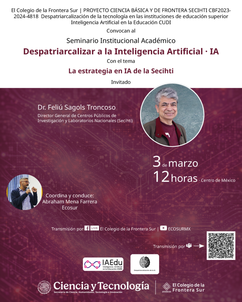 Seminario académico Despatriarcalizar a la Inteligencia Artificial (IA), con el tema: La estrategia en IA de la Secihti