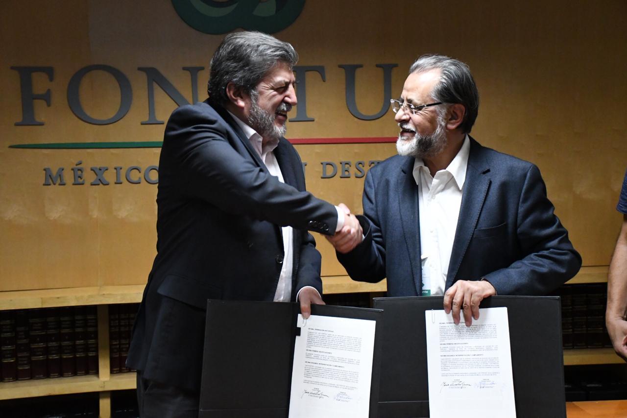 Ciudad de México, 4 de abril de 2019. El día de hoy, Rogelio Jiménez Pons, director general de FONATUR, y el doctor Mario González Espinosa, director general de El Colegio de la Frontera Sur (ECOSUR), firmaron un Convenio General de Colaboración, con el objetivo de llevar a cabo actividades conjuntas en materia de investigación científica, desarrollo de tecnologías y diseño de estrategias que contribuyan a fortalecer el proyecto del Tren Maya.