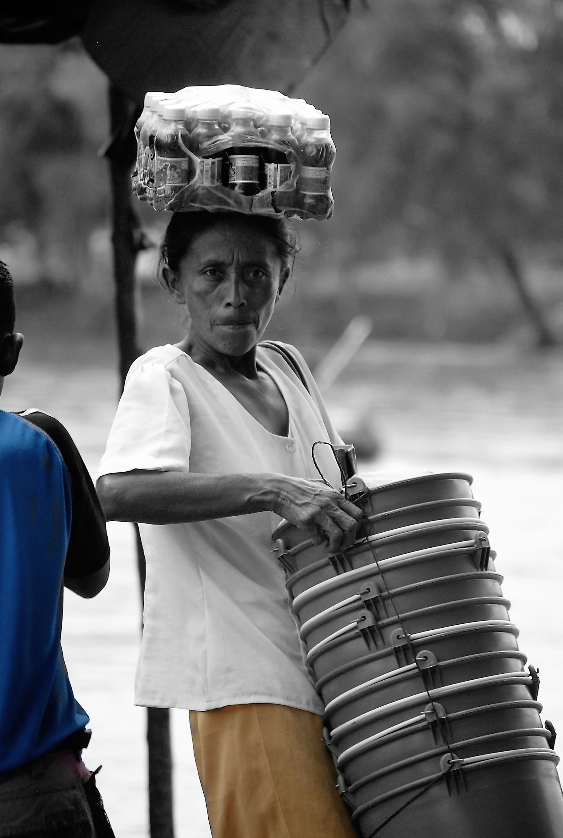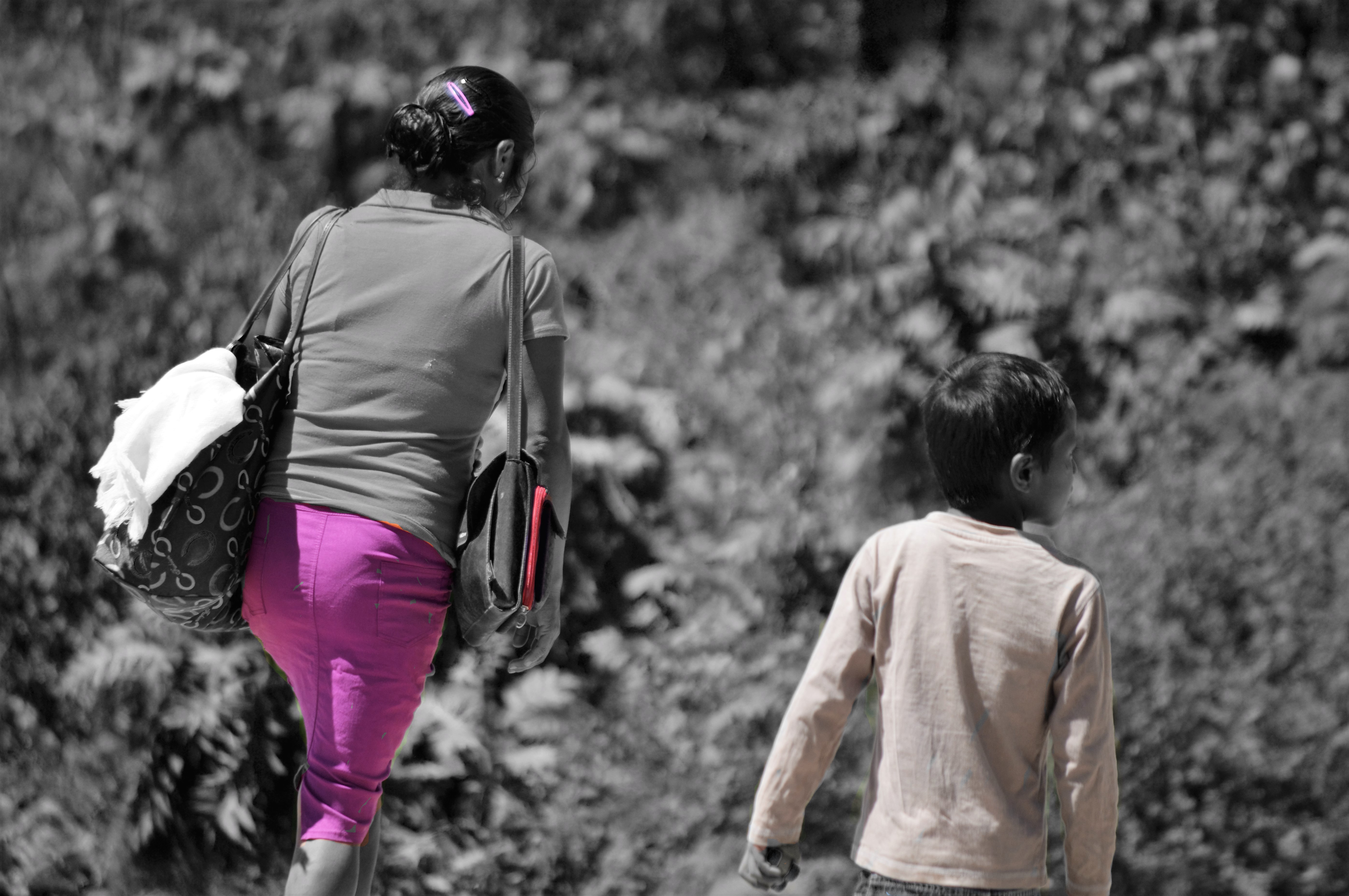 Estas pocas imágenes “robadas” en la espontaneidad de lo cotidiano quieren reparar en ellos y ellas, convertirlas, por el contraste con el color, en el objeto y sujeto de las miradas, en protagonistas visibles de un mundo complejo.