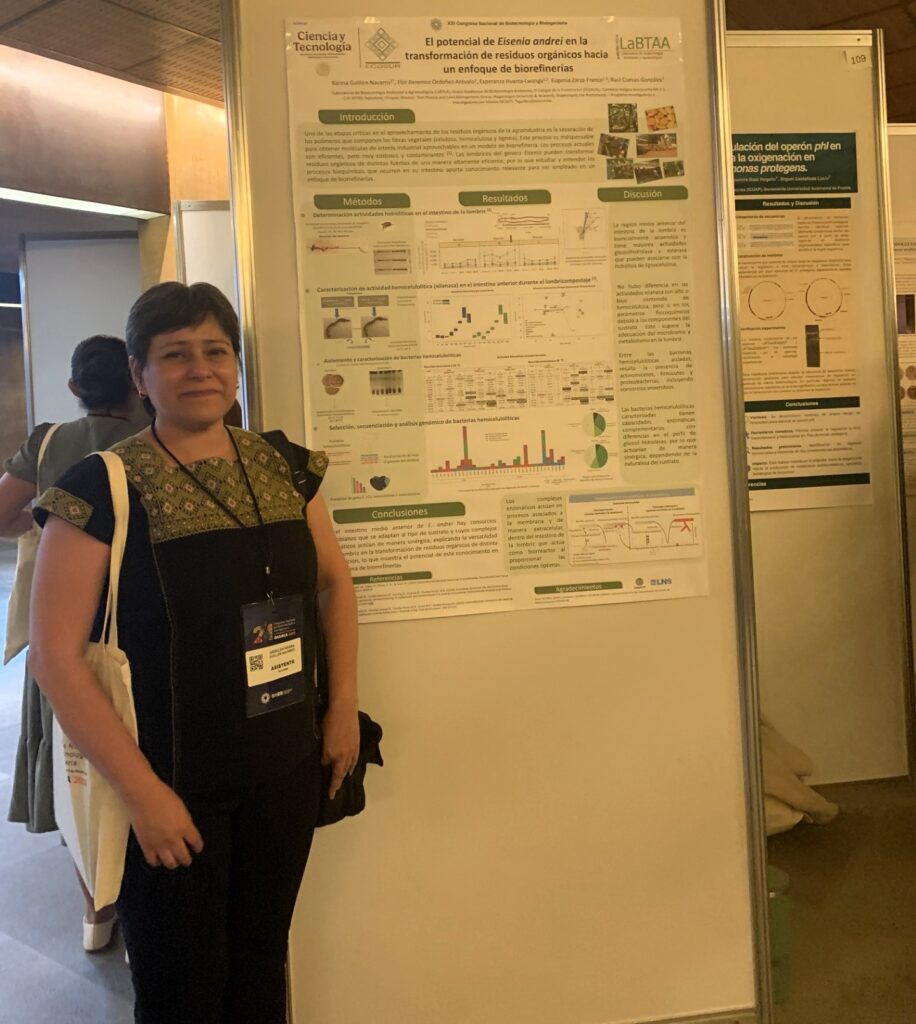 Karina Guillén Navarro, investigadora del Departamento de Ciencias de la Sustentabilidad en la Unidad Tapachula, obtuvo el 1er lugar en la presentación de carteles con el tema El potencial de Eisenia Andrei en la transformación de residuos orgánicos hacia un enfoque de biorefinerías, en la categoría VIII Biotecnología microbiana, en el XXI Congreso Nacional de Biotecnología y Bioingeniería, celebrado recientemente en Oaxaca.