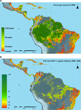 Con base en un mapa de los bosques presentes en 2008, los resultados del estudio muestran que el 17% del área forestal de tierras con altitud menor a 1,000 metros corresponde a bosques secundarios jóvenes de 1 a 20 años y 11% a bosques secundarios intermedios de 20 a 60 años, los cuales si se mantienen podrán regenerarse en los siguientes 40 años y tendrán una capacidad del doble de almacenamiento de carbono, con una ganancia de 8.48 petagramos de carbono o 31.09 petagramos de CO2, que equivalen a todas las emisiones de carbono por el uso del petróleo y de otros procesos industriales en todos los países de América Latina y el Caribe de 1993 a 2014. Asimismo, el estudio señala que 10 países pueden acumular el 95% de este carbono, entre los que destacan Brasil, Colombia, Venezuela y México.