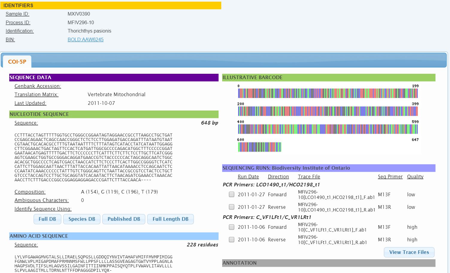 Toda la información obtenida hasta ahora está disponible en una gran biblioteca de códigos de barras, la cual se puede visitar en el sitio www.boldsystems.org. Alberga actualmente los datos de más de medio millón de especies de todo el mundo y forma parte del megaproyecto internacional llamado Barcode of Life, en el cual participan casi 100 naciones.