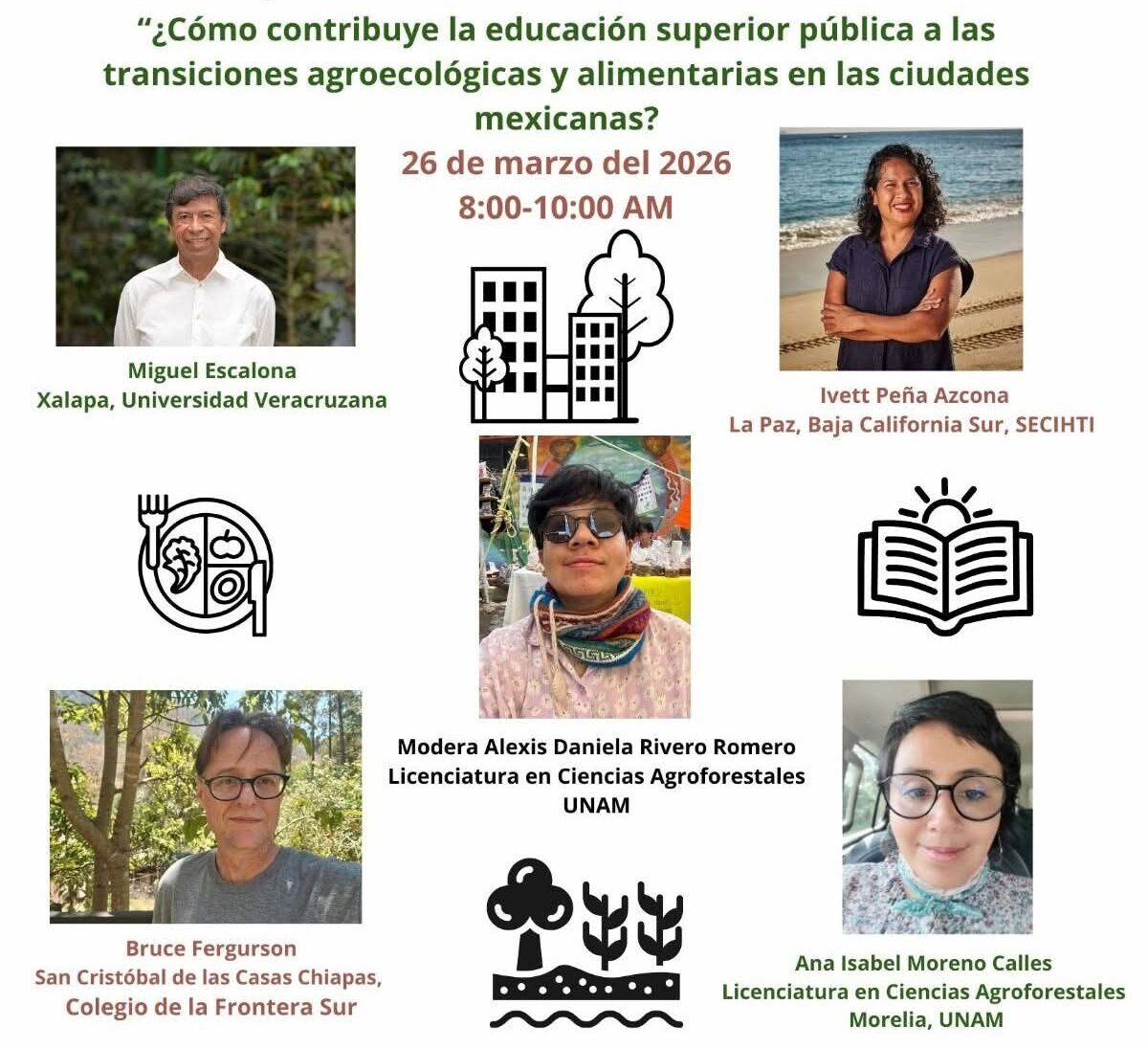 ¡Te esperamos este 26 de marzo, de 8:00 a 10:00 a.m., en la conversación “Cómo contribuye la educación superior pública a las transiciones agroecológicas y alimentarias en las ciudades mexicanas”!