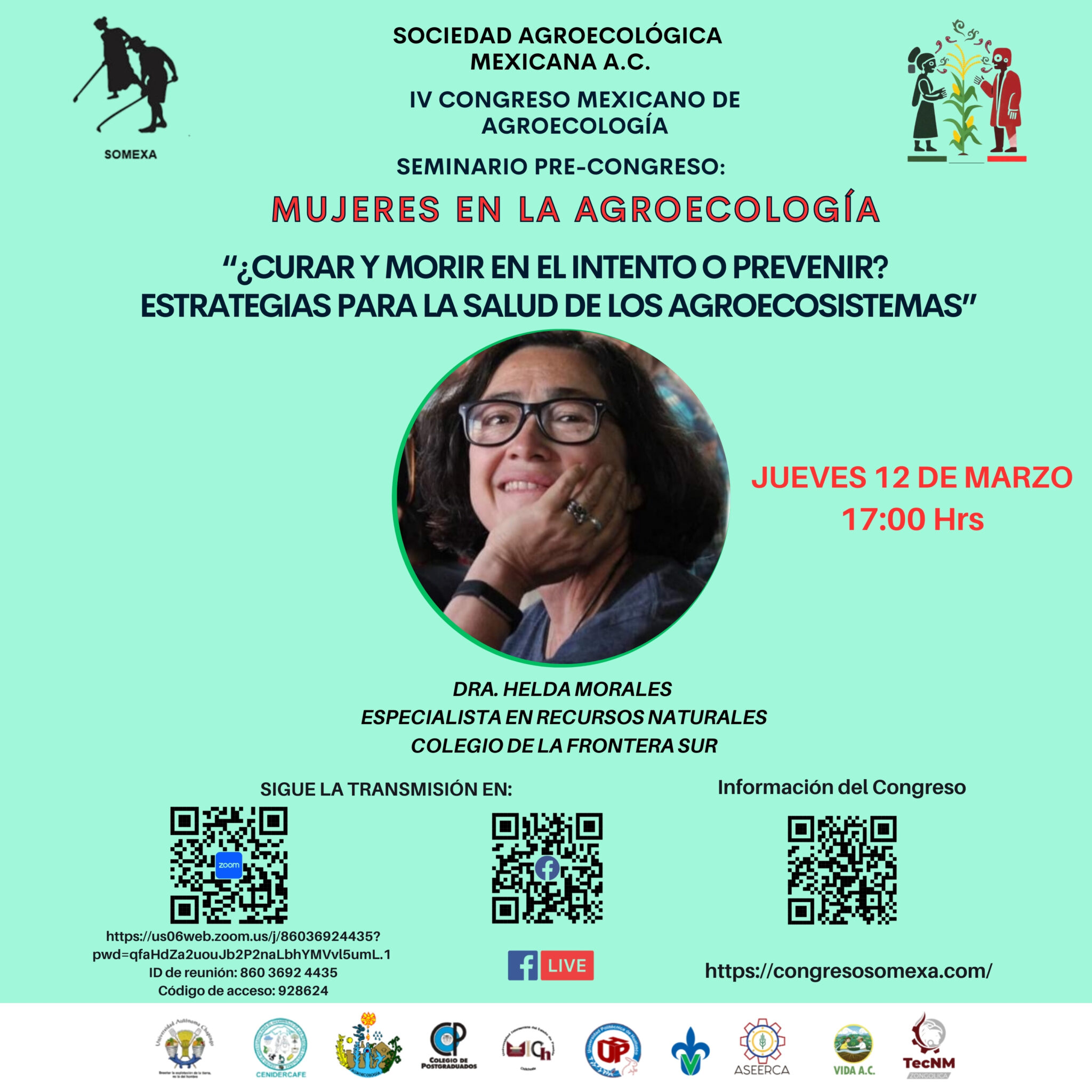 Les invitamos al seminario precongreso “Mujeres en la Agroecología”, organizado por la Sociedad Agroecológica Mexicana A.C., en el marco del IV Congreso Mexicano de Agroecología. En este espacio, la Dra. Helda Morales impartirá la conferencia titulada “¿Curar y morir en el intento de prevenir? Estra…