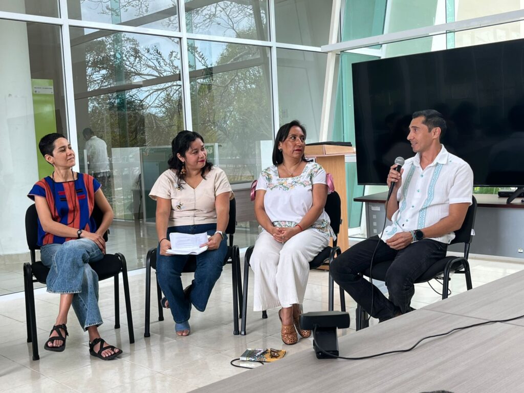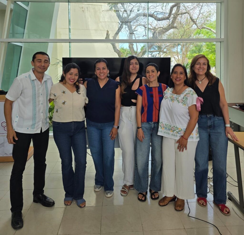 Miriam Aldasoro Maya, investigador por México comisionada a Ecosur, enfatizó la necesidad de integrar la ecología de las Meliponini con el cuidado del territorio desde las comunidades. Por su parte, Renata Escamilla, doctorante del CentroGeo, subrayó cómo la cartografía participativa pueden visibilizar paisajes bioculturales y orientar decisiones locales. Alejandro Pereira, investigador por México en CIATEJ, abordó la dimensión tecnocientífica desde el microbioma de las abejas sin aguijón hasta la necesidad de promover más la educación sobre las abejas nativas entre la población para ayudar a conservarla ellas y al entorno.