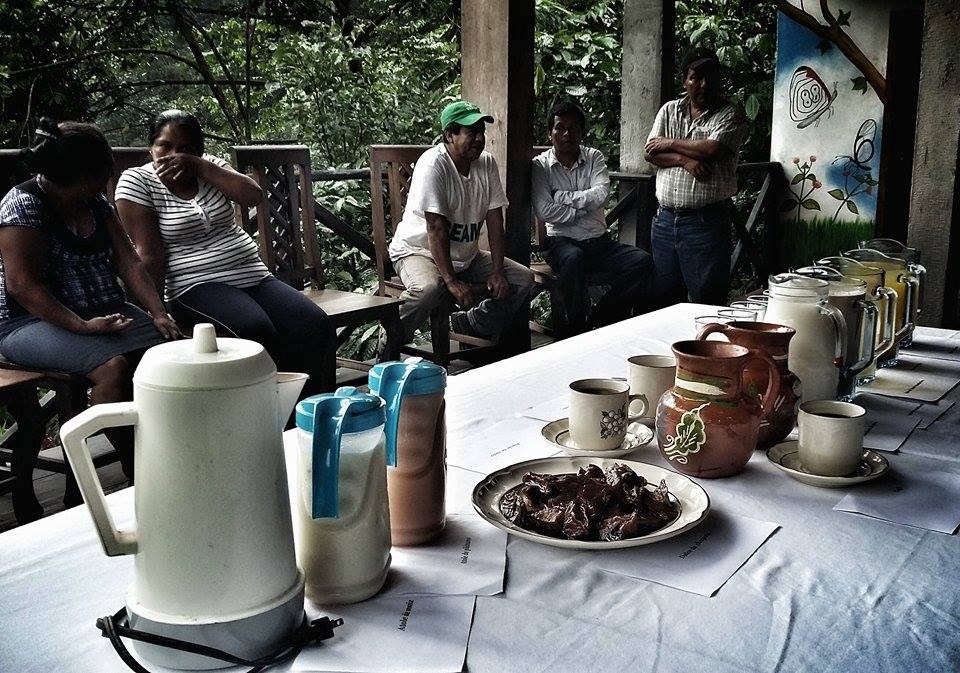 Las fotos de esta galería fueron tomadas en el ejido El Águila, Cacahoatán, Chiapas durante los últimos días del mes de octubre. El motivo de la visita era ser partícipes, y felices comensales, de una muestra gastronómica organizada por ´las comideras´ de la localidad, como se les llama a las mujeres encargadas de la comida de las fiestas de la localidad al reconocerlas como buenas cocineras, algunas de ellas también son colaboradoras del Centro Ecoturístico Mariposas Alas de agua, Pak’al Tsix A’ en lengua mam, sede del evento. El lugar está enclavado en el paradisiaco paisaje de las faldas del volcán Tacaná, zona de vocación cafetalera. Pak’al Tsix A’ cuenta con un restaurante y dos cabañas con un cómodo, modesto y funcional servicio de hospedaje. La muestra gastronómica fue organizada para reunir recetas tradicionales de la región, compartirlas, mostrarlas y degustarlas para así coadyuvar a conservarlas y difundirlas entre un público más amplio combinando esfuerzos con un grupo de investigadores y tesistas de ECOSUR Tapachula y San Cristóbal, que entre diversas actividades están conceptualizando y desarrollando estrategias de divulgación para favorecer las metas en común en torno al proyecto ecoturístico, la alimentación y la cultura mam.