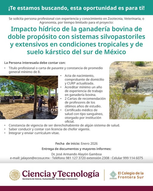 Se solicita profesional  con experiencia en Zootecnia, Veterinaria o Agronomía