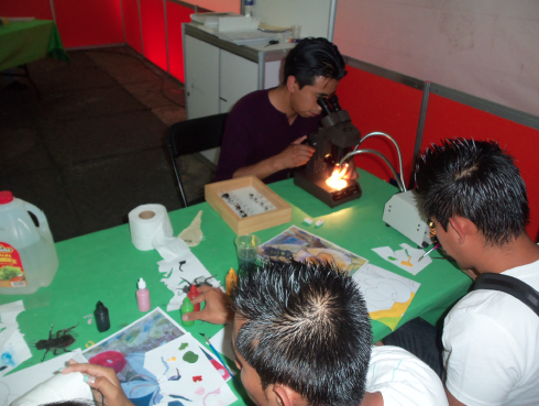 En el taller El mundo de las abejas-taxonomía didáctica, realizado por Thomas Gruber, colaborador del equipo de abejas del Departamento de Agricultura, Sociedad y Ambiente, los participantes pudieron observar el cajón demostrativo de la colección de abejas nativas de Ecosur y apreciaron la importancia del oficio del taxónomo. Posteriormente, observaron en microscopio algunas especies nativas de México y al finalizar realizaron una práctica didáctica que consistió en pintar y armar una abeja nativa, la cual pudieron conservar como recuerdo de su participación. Este taller interactivo respondió a la necesidad de dar a conocer y difundir el mundo de las abejas nativas para que las personas puedan conocer la biodiversidad que tenemos en México a nivel polinizadores y ecosistemas, y tomar conciencia de su conservación.