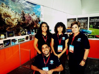 Las actividades del taller El Mar Caribe en tierra: biólogo marino por un día, estuvieron a cargo de la oceanóloga Angélica Ramírez González, las biólogas marinas Suleyma Sánchez Hernández y Rebeca Meléndez Rosas, técnica y estudiantes, del Departamento de Sistemática y Ecología Acuática, y el psicólogo Enrique Sosa, colaborador de Ecosur, quienes hablaron de la importancia que tienen los tiburones y los arrecifes coralinos en el ecosistema marino, e hicieron demostraciones del funcionamiento del equipo de buceo que un biólogo marino utiliza para realizar la observación e identificación de especies arrecifales.