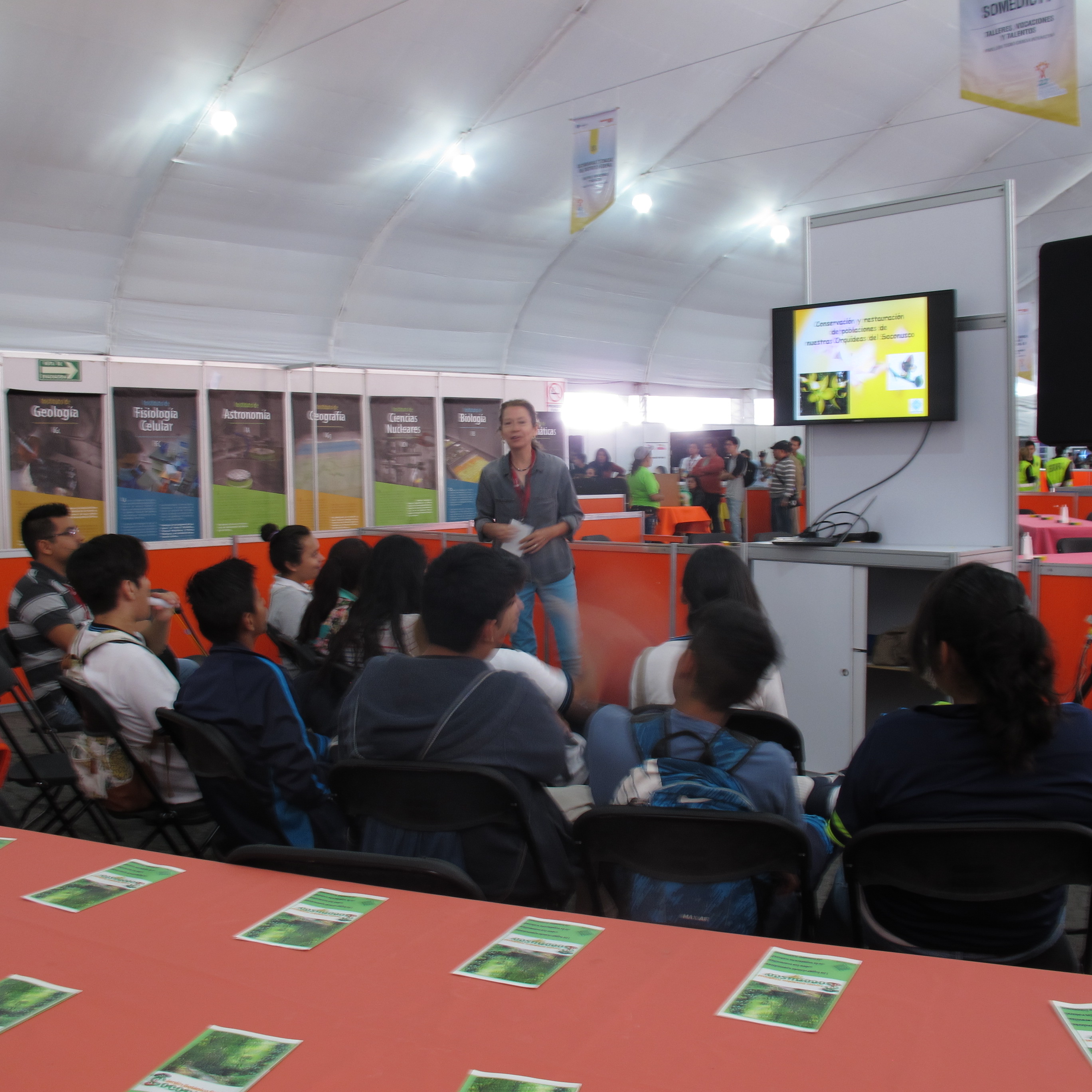 El taller de Cultivo sustentable y restauración de poblaciones de orquídeas epífitas en el sureste de México, estuvo a cargo de la doctora Anne Damon, investigadora del Departamento de Conservación de la Biodiversidad, quien expuso a los asistentes sobre temas de conservación y cultivo sustentable de orquídeas, abejas y polinización, así como la importancia del tema ecológico y de educación ambiental para la sociedad en general y en especial a niños y jóvenes.