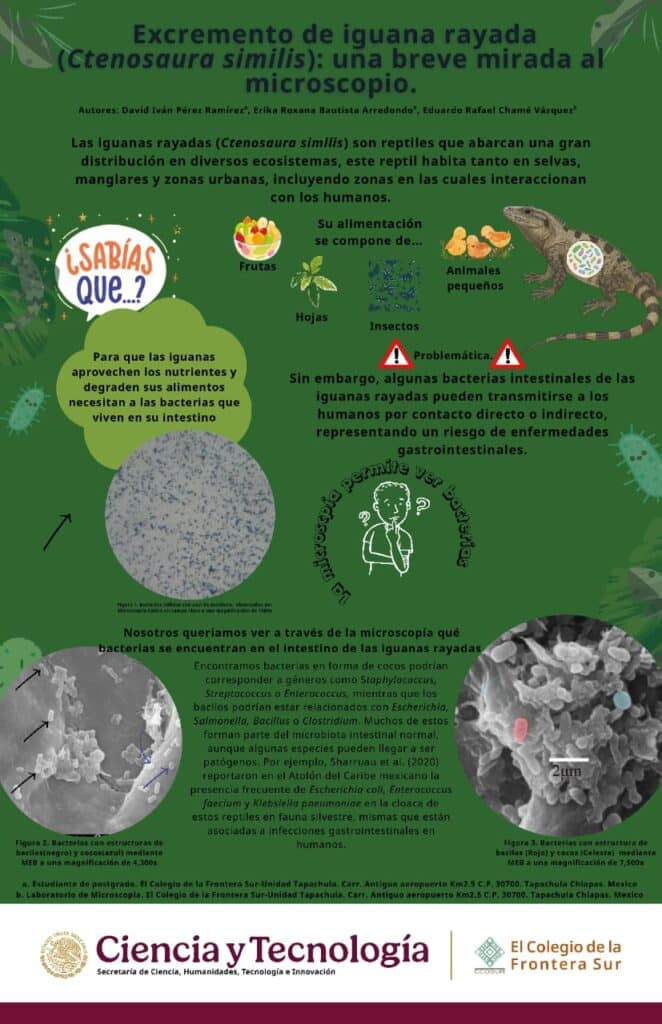 Excremento de iguana rayada (Ctenosaura similis): una breve mirada al microscopio. Publicado el 10 noviembre, 2025 - 1:45 pm Autor: David Iván Pérez Ramírez, estudiante de la Maestría de Recursos Naturales y Desarrollo Rural