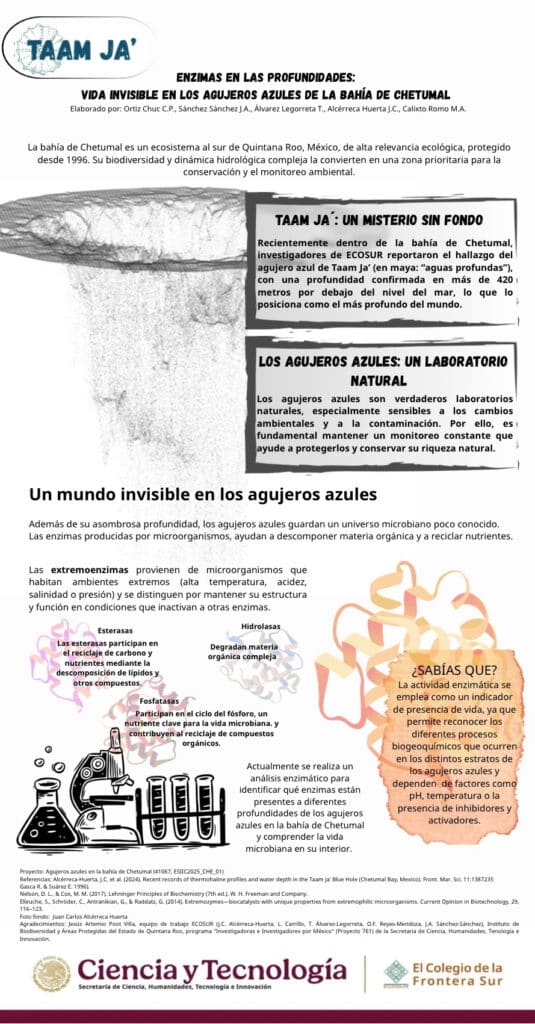 Enzimas en las profundidades: vida invisible en los agujeros azules de la Bahía de Chetumal Publicado el 10 noviembre, 2025 - 4:06 pm