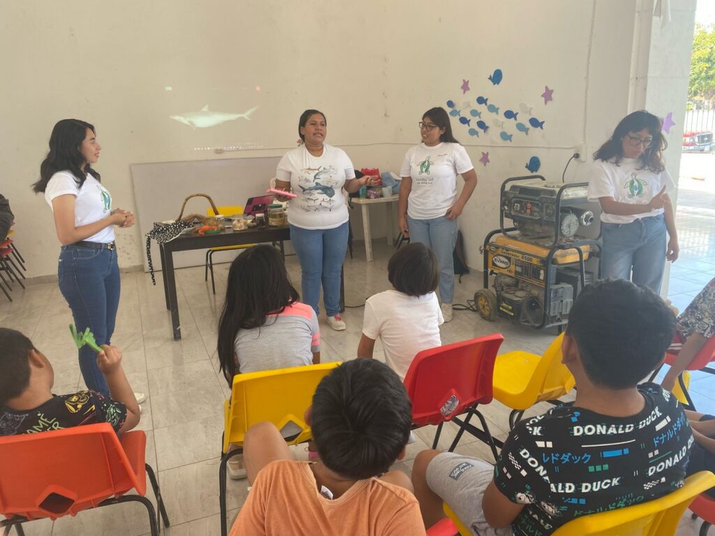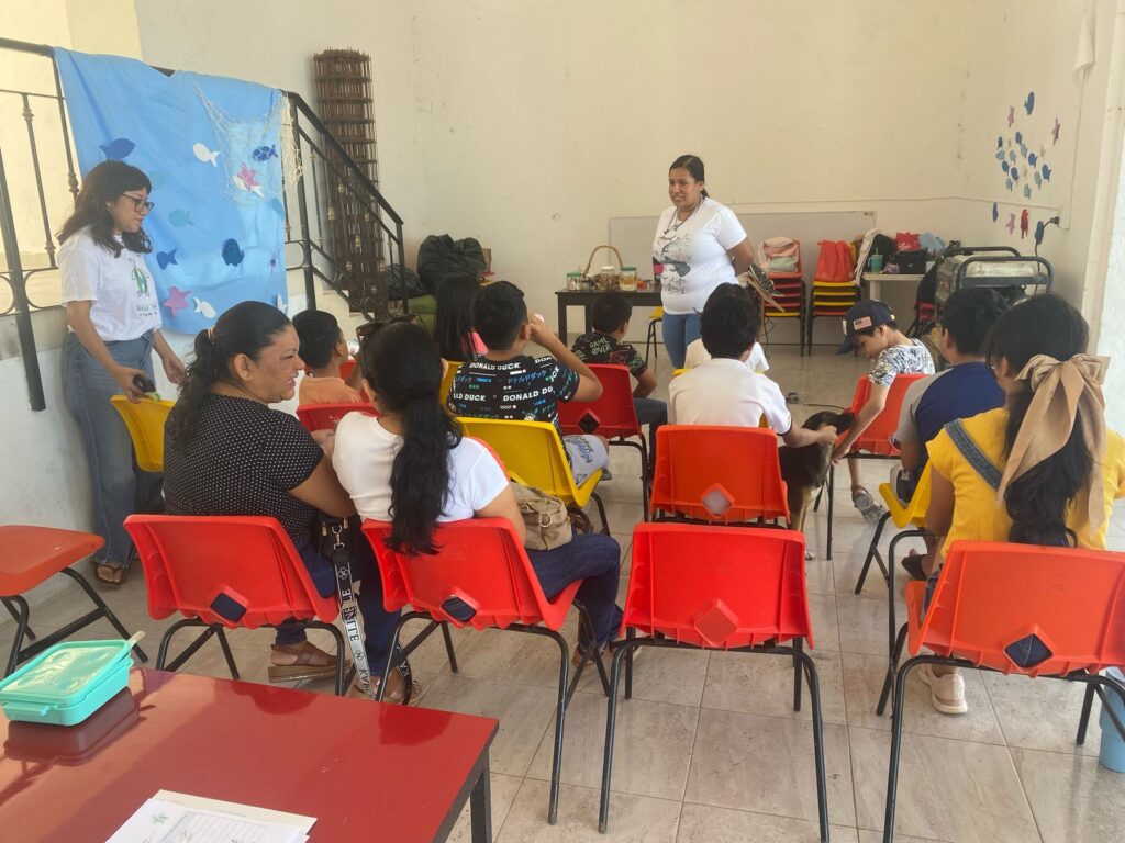 El taller fue diseñado para niñas y niños de la comunidad que participaban en un programa local de natación en colaboración con estudiantes de la Facultad de Psicología de la UAC. Durante este proceso, se identificó que el desconocimiento sobre los animales marinos les generaba miedo a nadar en sus playas, por lo que se organizó esta actividad para brindarles mayor confianza y fortalecer los vínculos entre la comunidad y su entorno natural.